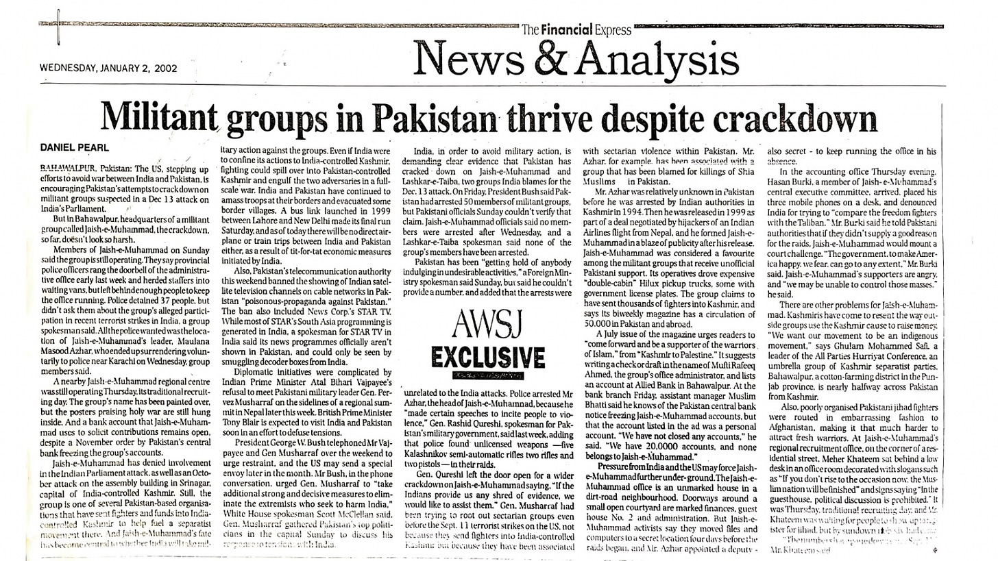 In late December 2001, my friend and colleague, Wall Street Journal reporter Daniel Pearl, traveled to Bahawalpur, Pakistan, in the country’s Punjab province, to see if Gen. Pervez Musharraf was actually enforcing the crackdown he claimed he was imposing on Pakistan’s homegrown terrorist organizations.