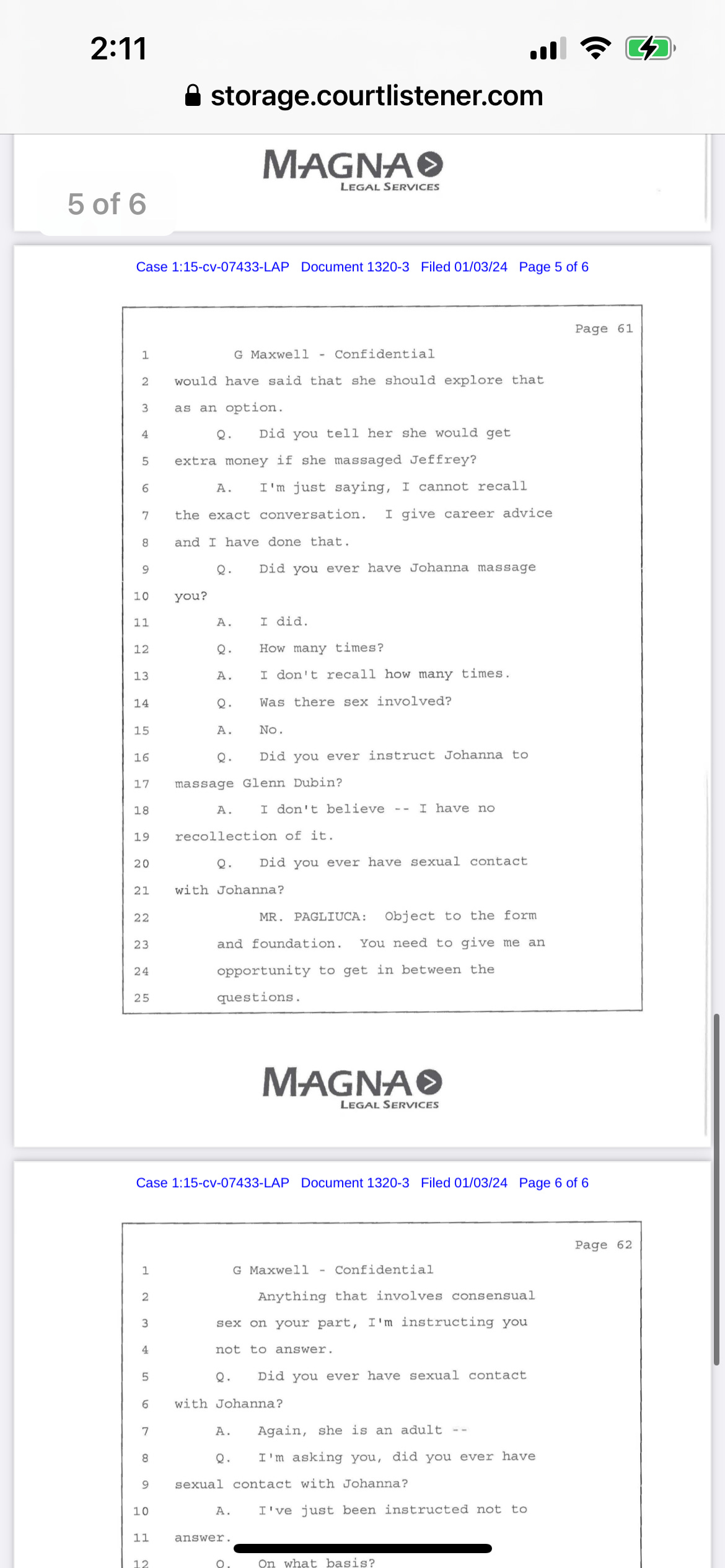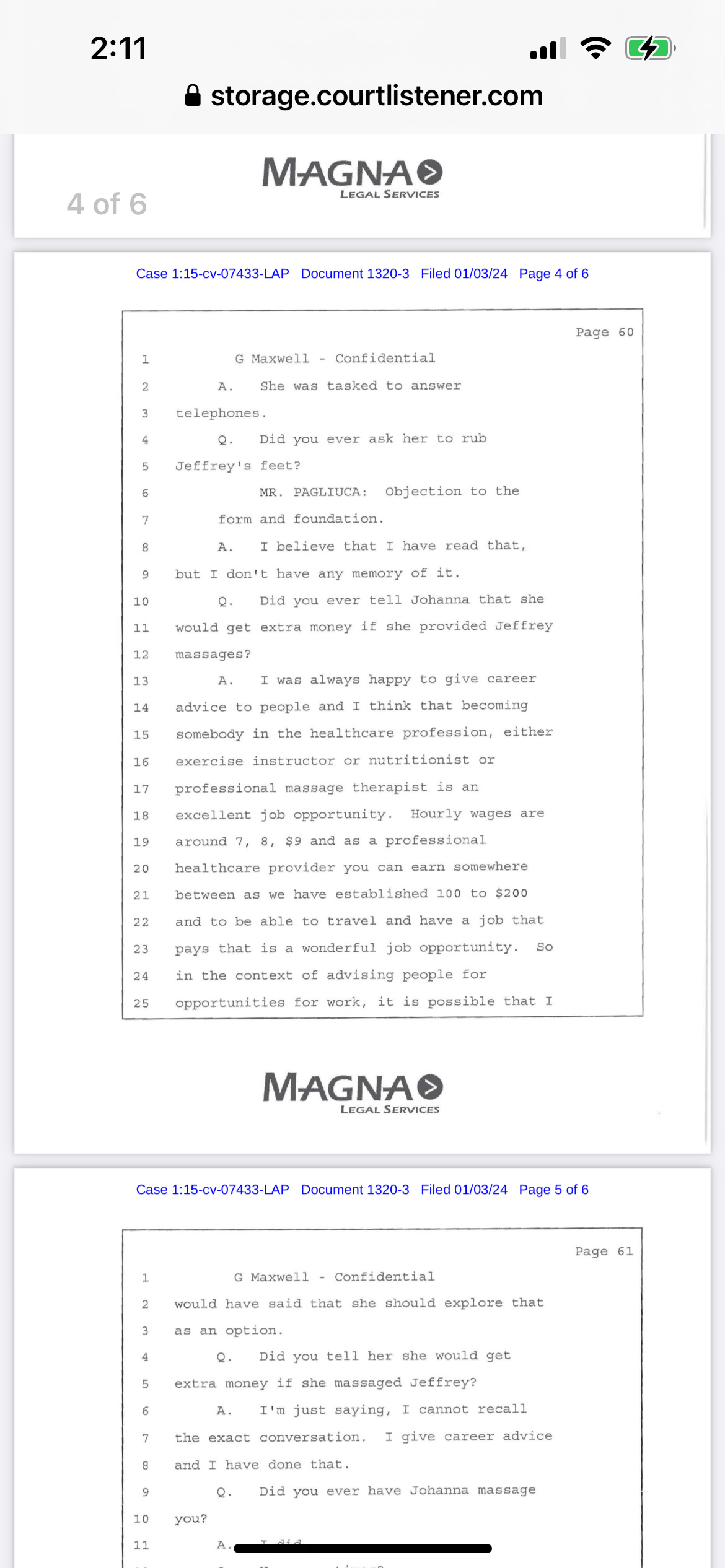 #3 Exhibit DE 144-4: Videotaped deposition of Maxwell about how she gave “career advice” to young masseuses.