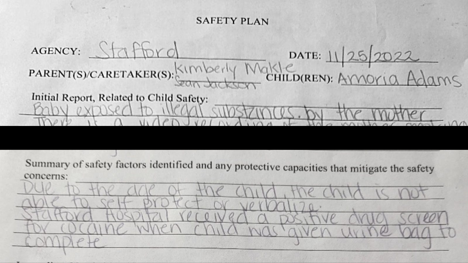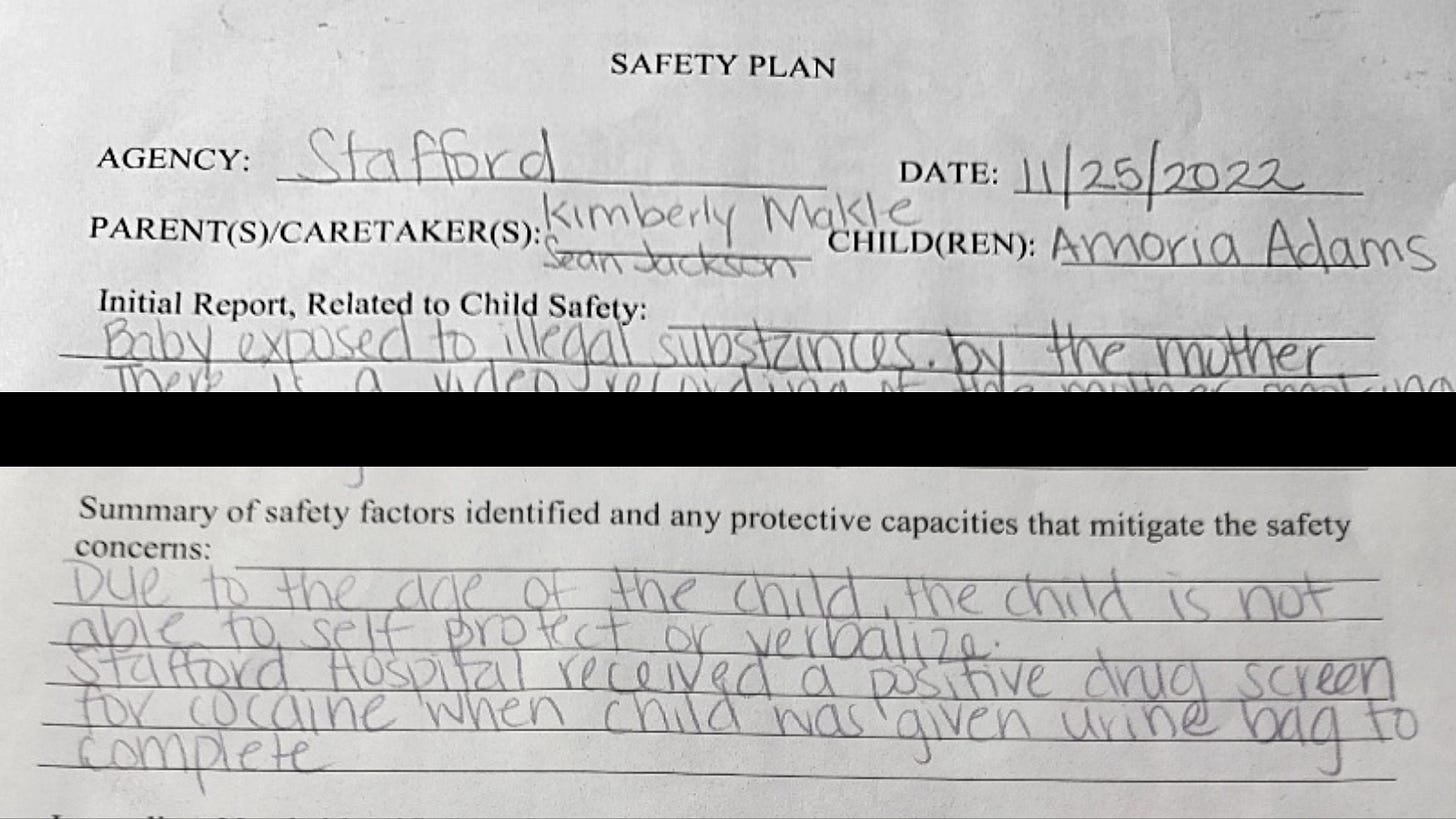 On Friday, Dec. 2, Jackson got a safety plan from Arlington CPS. There is some solace the plan gives his once-demonized parents temporary custody. But he could only see Amoria in supervised visits, while subjected to drug screenings. In the presence of witnesses, a CPS officer told Jackson that if he didn’t sign the document CPS would start proceedings to put Amoria in foster care.