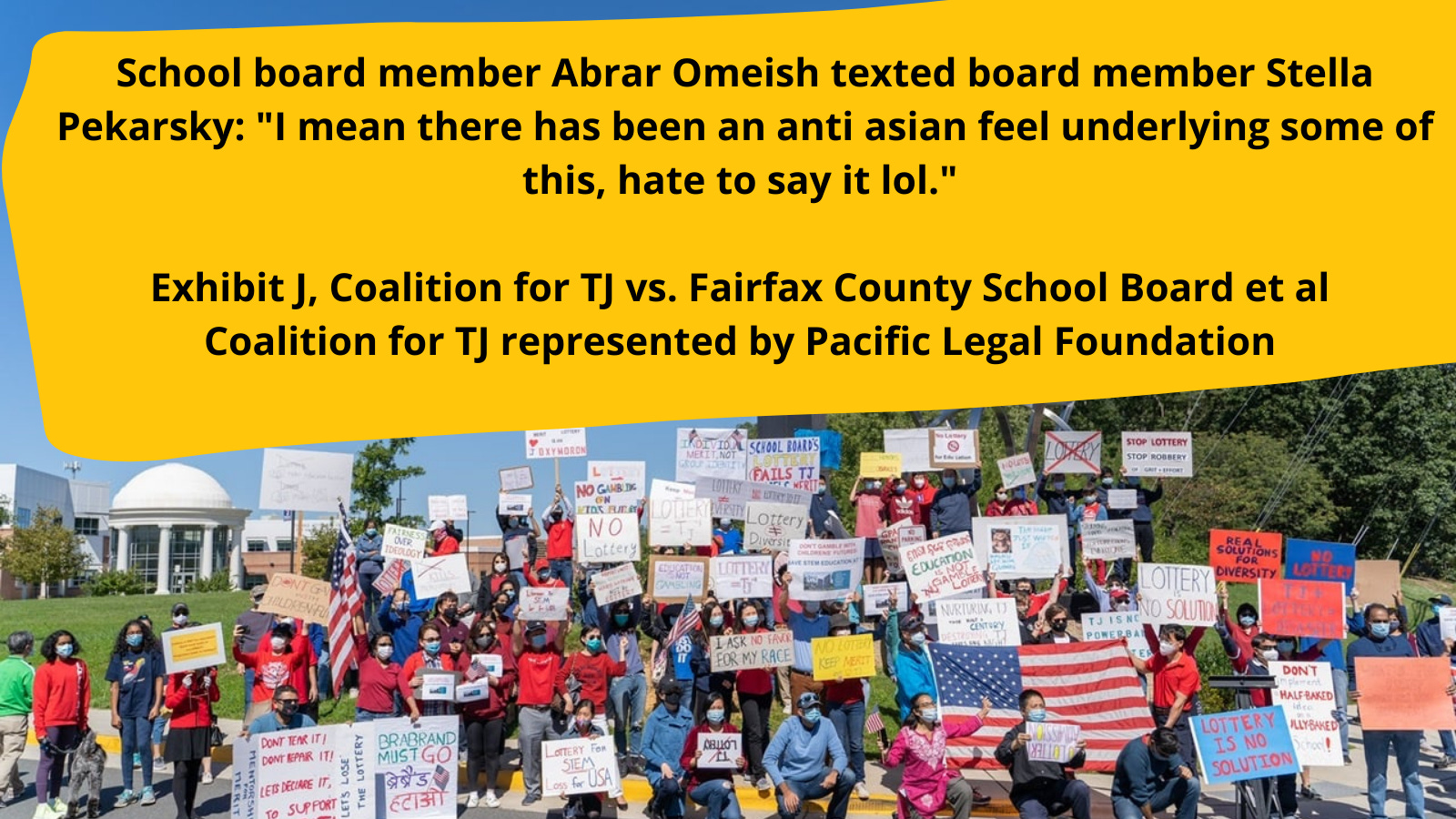 No. “Anything” would not have been possible. That is why the Fairfax County School Board is the new “Massive Resistance” to equal protection under the law in the 21st century. That is why Coalition for TJ v. Fairfax County School Board is as historic as Brown v. Board of Education for our 21st century.